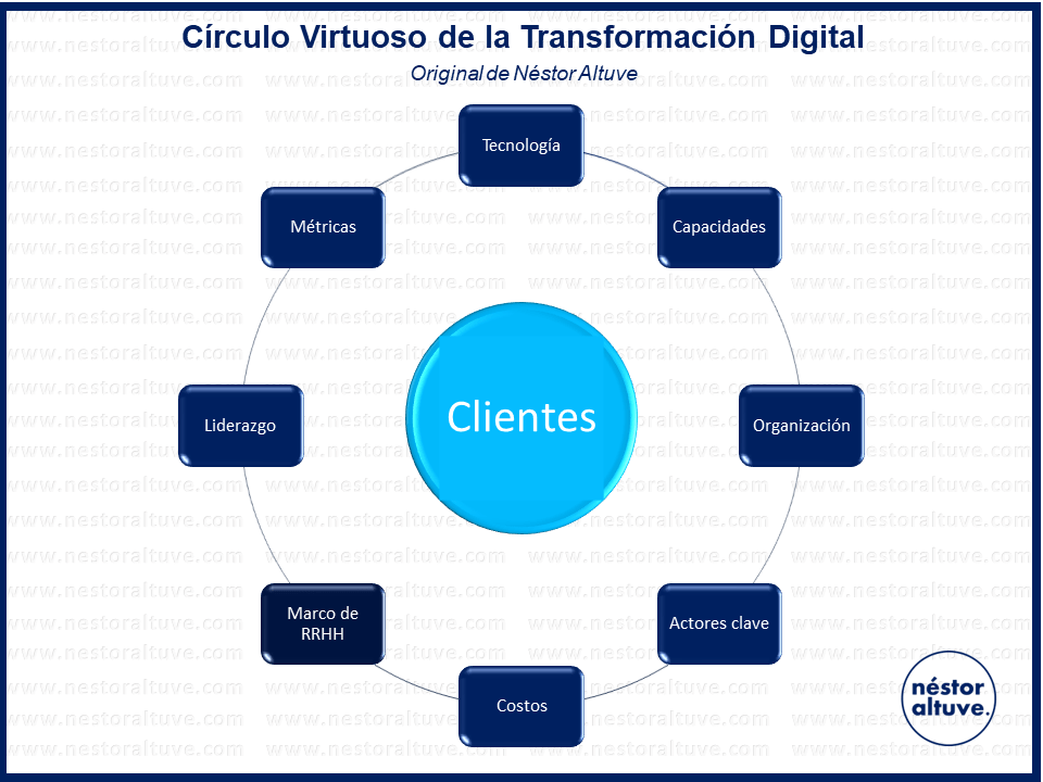 No puede existir en la actualidad virtuosismo si ese círculo no rodea lo más importe que puede tener un negocio, sus clientes. Alrededor de ellos tienen que generarse todos los cambios propuestos.
