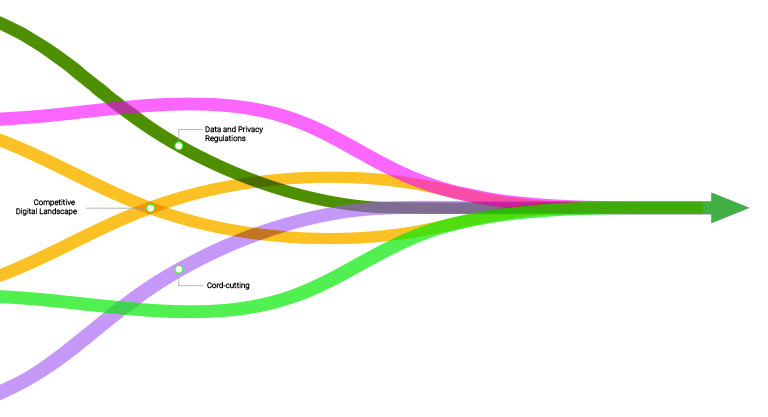 - El Fin de la Era Dorada del Crecimiento Digital: Se destaca que el crecimiento exponencial de contenido compite por la atención de una audiencia digital de crecimiento más lento, con más de 40,000 programas y películas ofrecidos por las principales plataformas de streaming de vídeo y una abundancia de contenido generado por usuarios individuales.