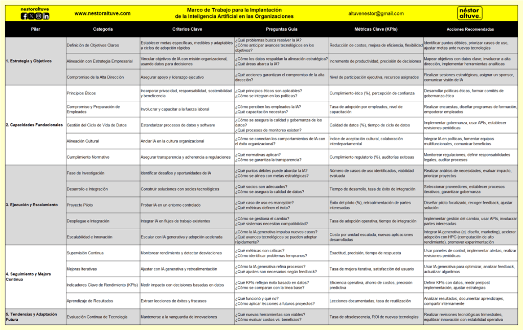 En conclusión el «Marco de Trabajo para la Implantación de la Inteligencia Artificial en las Organizaciones» no es solo una guía, es una invitación a transformar tu empresa con inteligencia, ética y visión estratégica. Aquí podrás descargar la herramienta para que lideres esta revolución. ¿Estás listo para dar el siguiente paso?