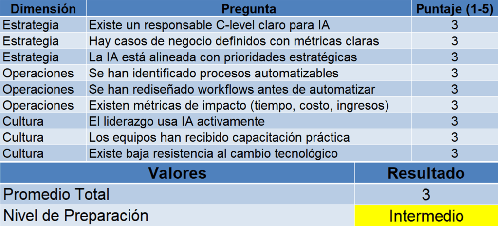 Objetivo: Medir preparación real, no entusiasmo.